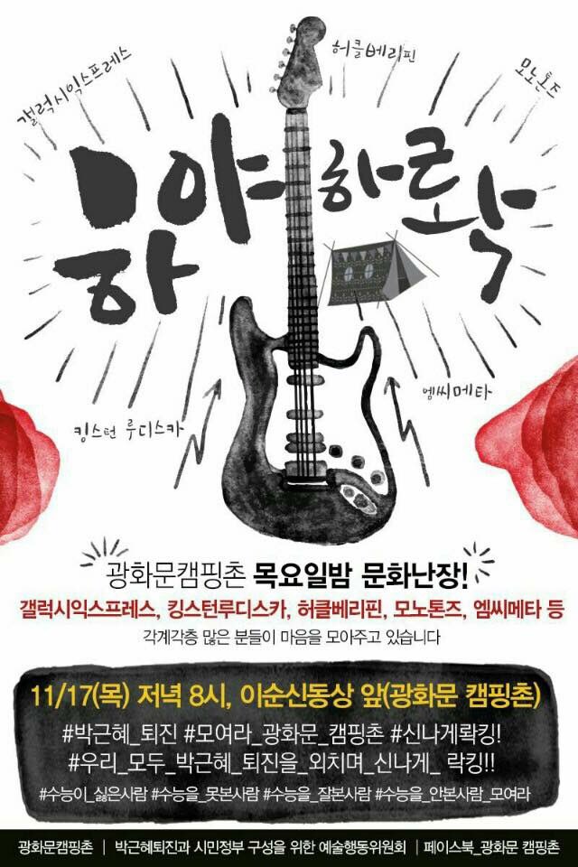 서울 11월17일(목) 8시 이순신동상 앞 (광화문 캠핑촌) 문화난장 하야하롹