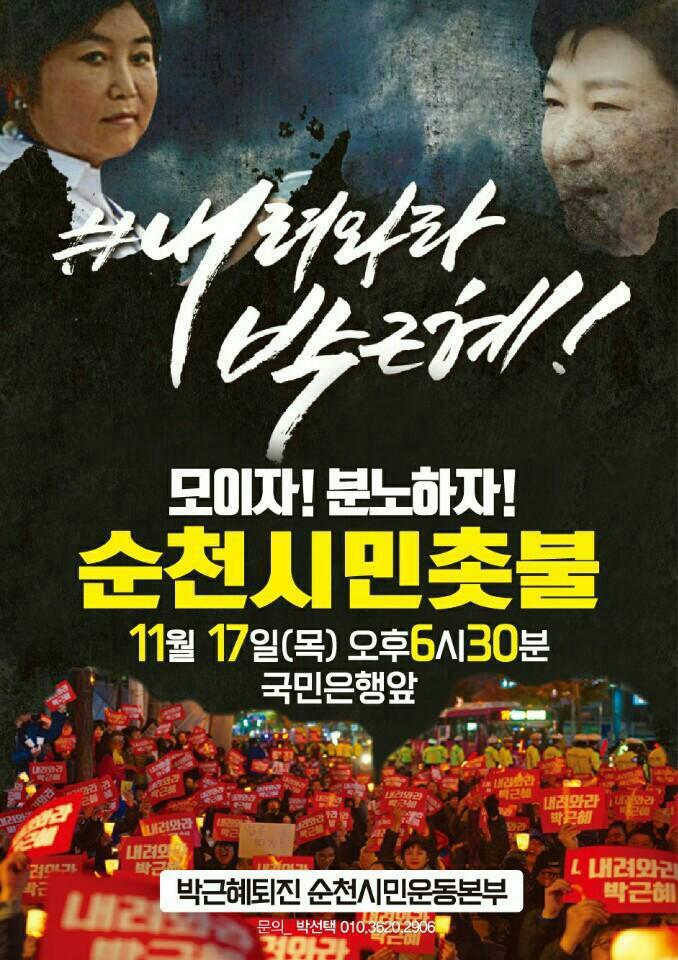 11월17일 (목) 박근혜 퇴진,하야 촛불집회 일정