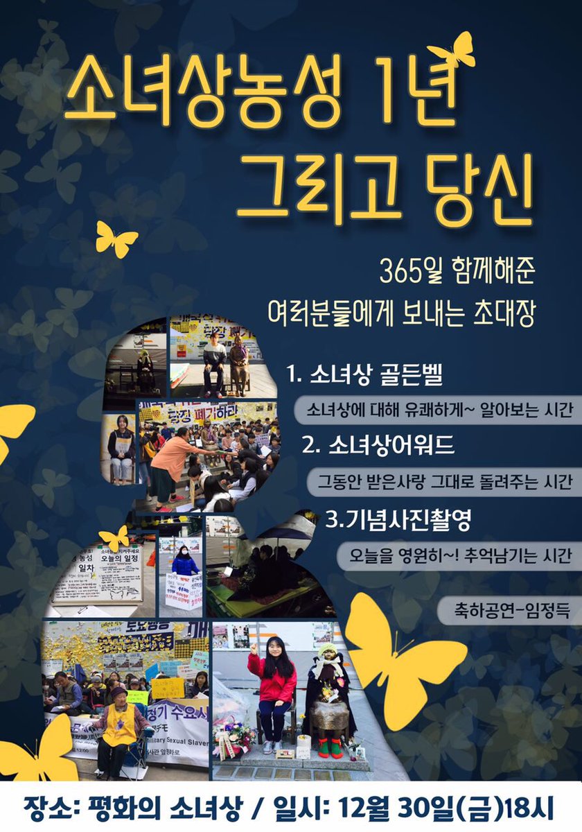 서울 일본대사관 12월30일(금) 6시 평화의 소녀상 소녀상농성 1년 그리고 당신