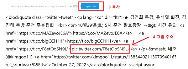 4. 이미지/그림 주소만 필요합니다. 주소는 "pic.twitter.com/주소" 형태입니다. 이것만 복사합니다.