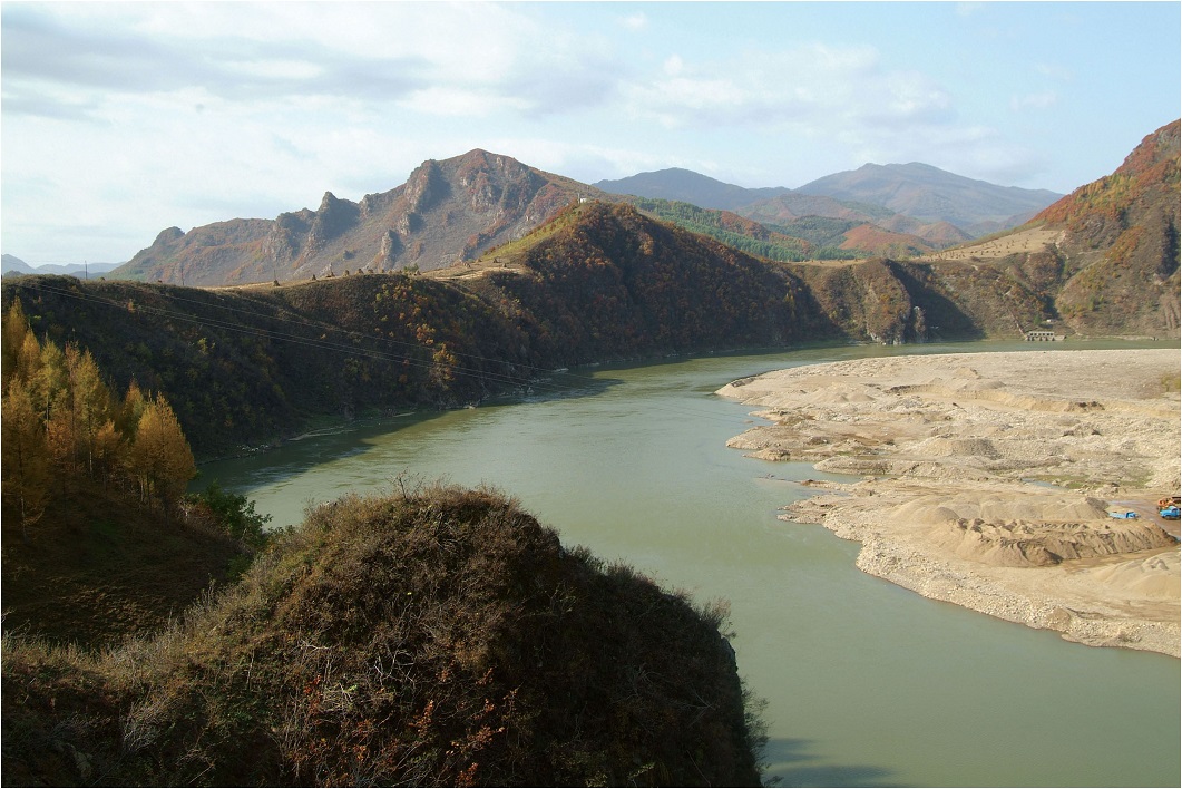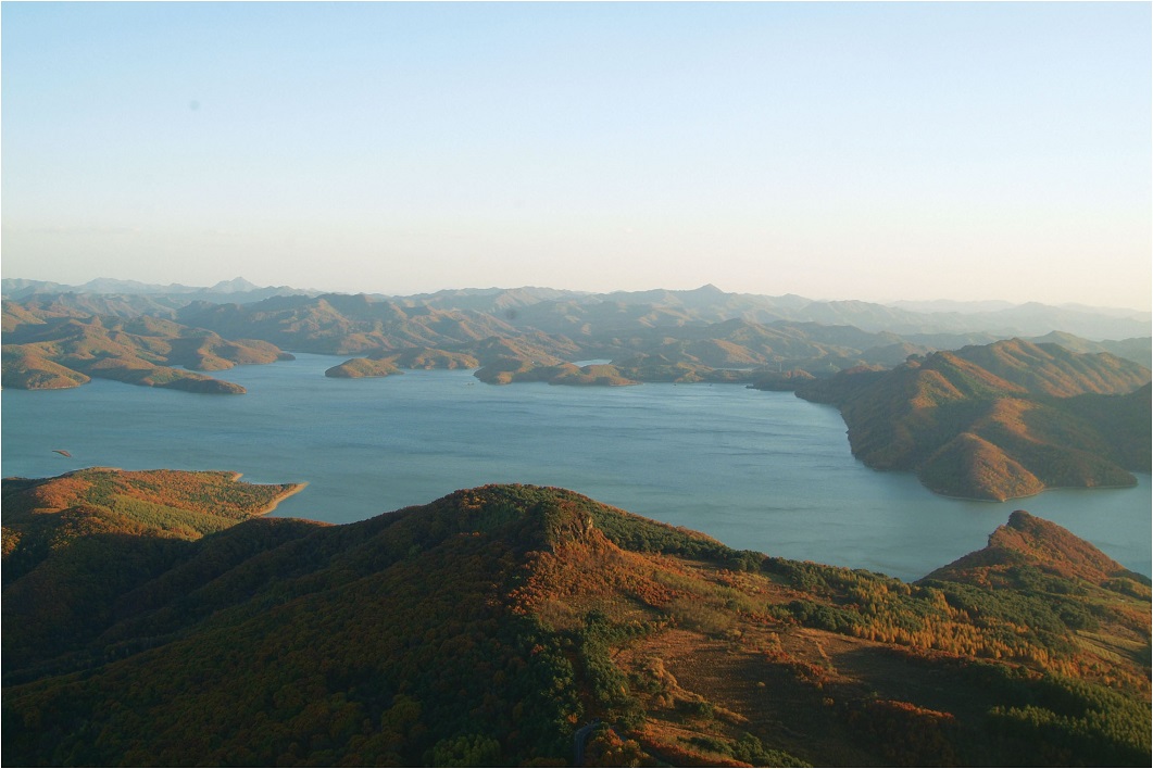 [그림 3] 오녀산성에서 바라본 환인댐과 혼강(비류수)의 사행천