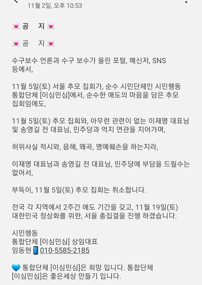 3) 11월3일 오후 2시 추모집회 확정 공지