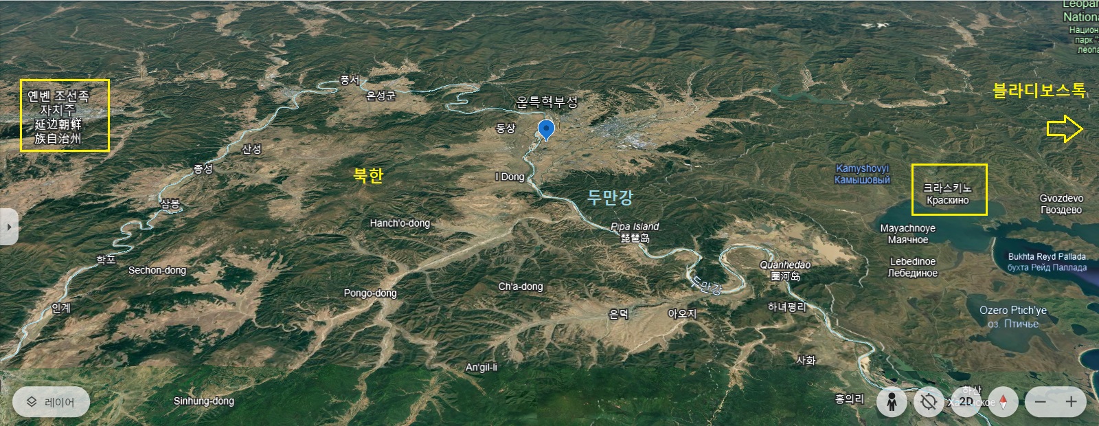 훈춘/혼춘하 일대 성 분포도