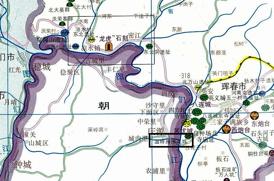 온특혁부성 위치도 및 온성, 훈춘/혼춘 일대 지도