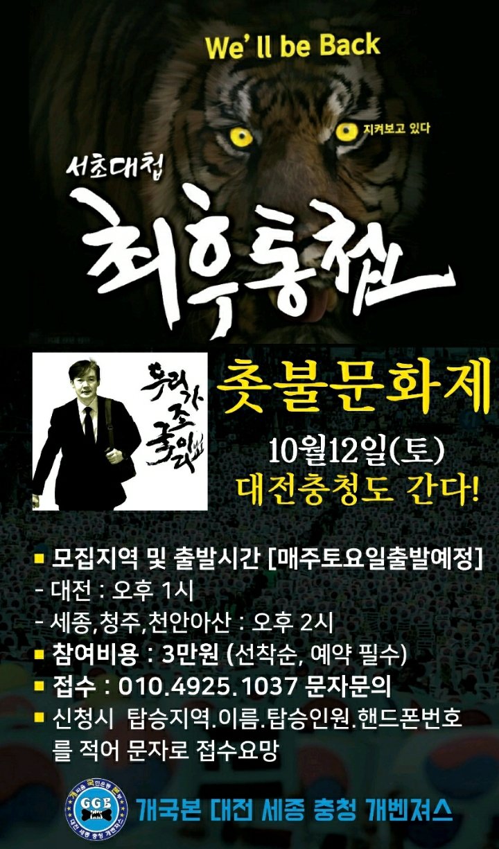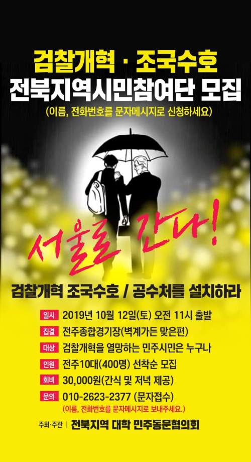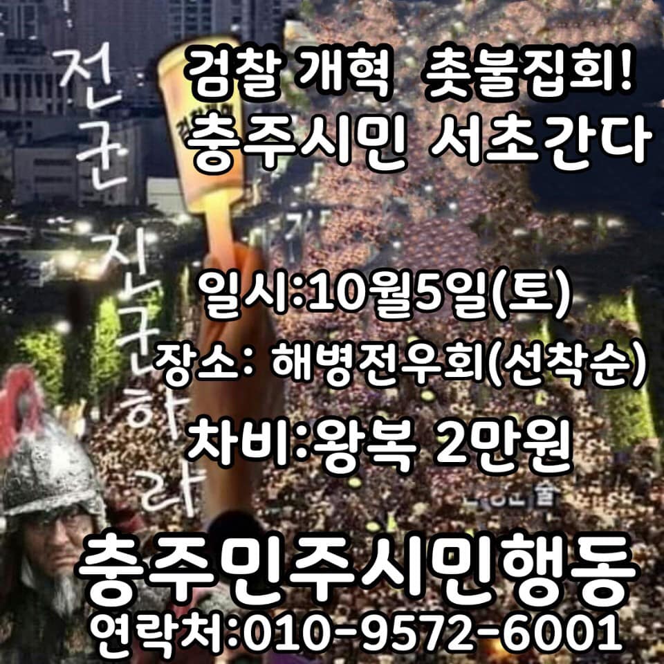 | 10월5일(토) 6시 서초역 [ 검찰개혁 촛불집회 ] 및 상경버스 (0) | 2019.10.02 |