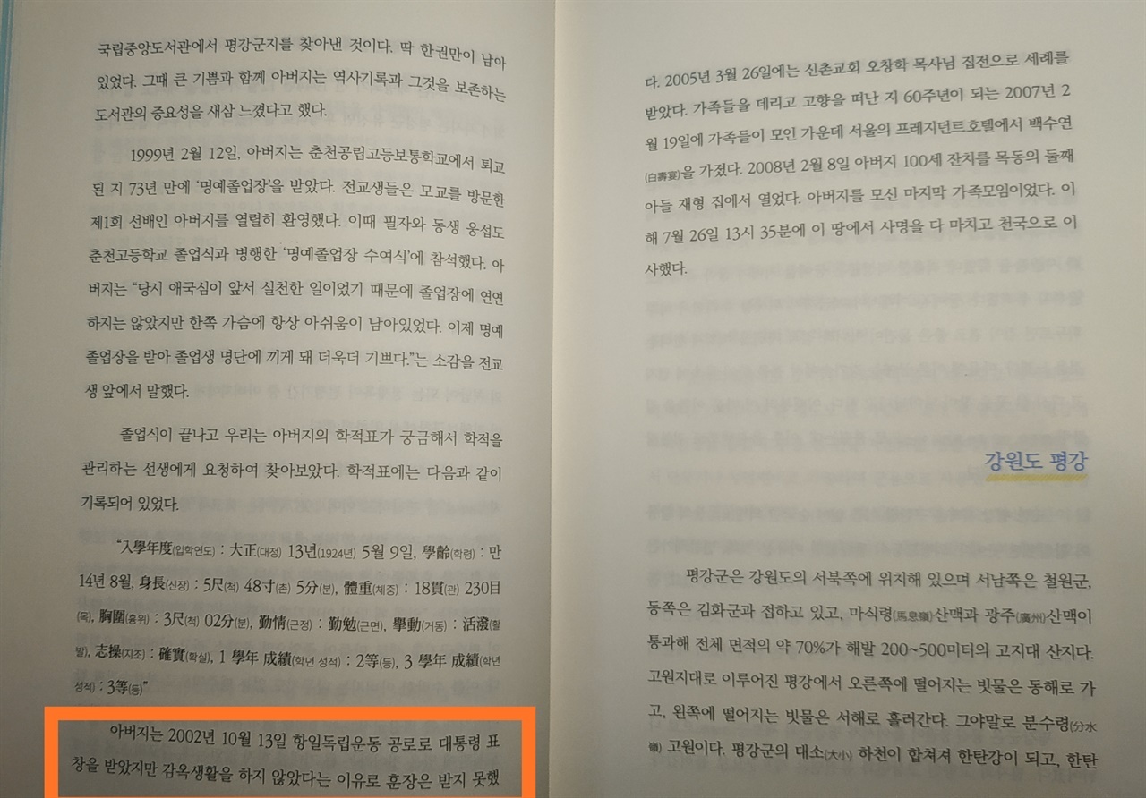 일제강점기이던 1942년에 평강군수의 지시를 받아 <평강군지>를 만들었던 아버지 최승현에 이어 1984년에 <평강군지>를 발간한 일을 높이 평가받아 대통령표창을 받은 모양입니다만, 공적개요에 '항일독립운동 공로'를 인정한다는 것으로 오해할 만한 대목은 그 어디에도 없습니다.