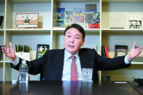 윤석열 국민의힘 대선후보가 7일 서울 여의도 당사에서 중앙일보와 인터뷰를 갖고 있다