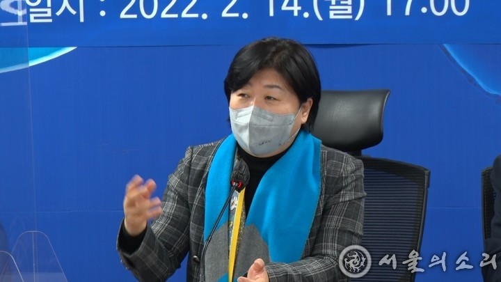 ▲ 국회 행정안전위원회 위원장인 서영교 더불어민주당 의원이 14일 국회 의원회관에서 열린 촛빌시민 대선 승리 결의대회에 참석해 발언하고 있다. © 윤재식 기자