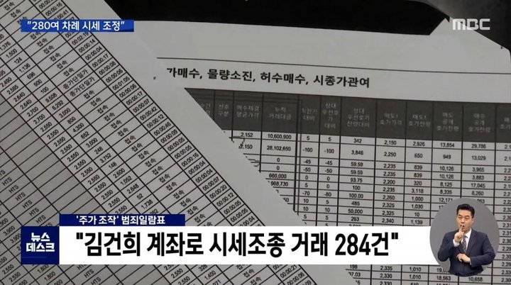 매도자와 매수자가 사전에 협의해 같은 시점에 물량을 주고받는 통정매매는 물론, 고의로 시세를 올리는 고가매수 주문, 또 매수자가 많은 것처럼 보이기 위해 허위 주문을 반복하는 허수 매수까지 주가조작의 다양한 수법들이 거래 전체에서 김씨 계좌가 확인됐다.