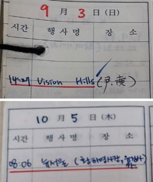 ▲ 조남욱 전 삼부토건 회장의 휴대용 일정표. 지난 2006년 9월과 10월에 당시 현직 검사였던 윤석열과 골프 라운딩을 했다는 내용이다.