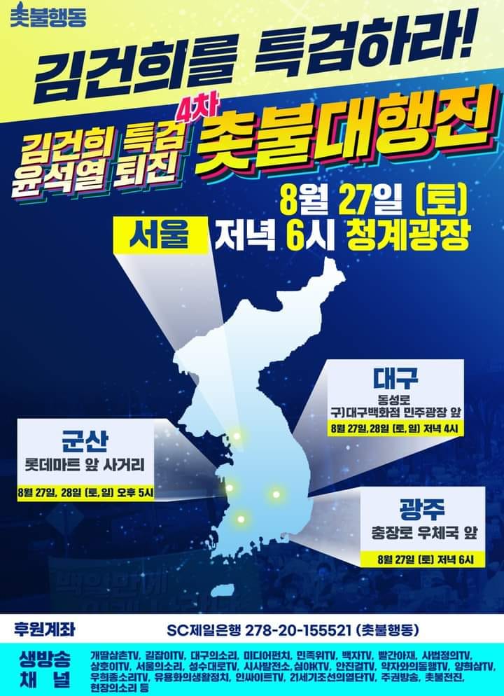 8월27일 (토) 김건희 특검, 윤석열 퇴진 4차 촛불 대행진 일정
