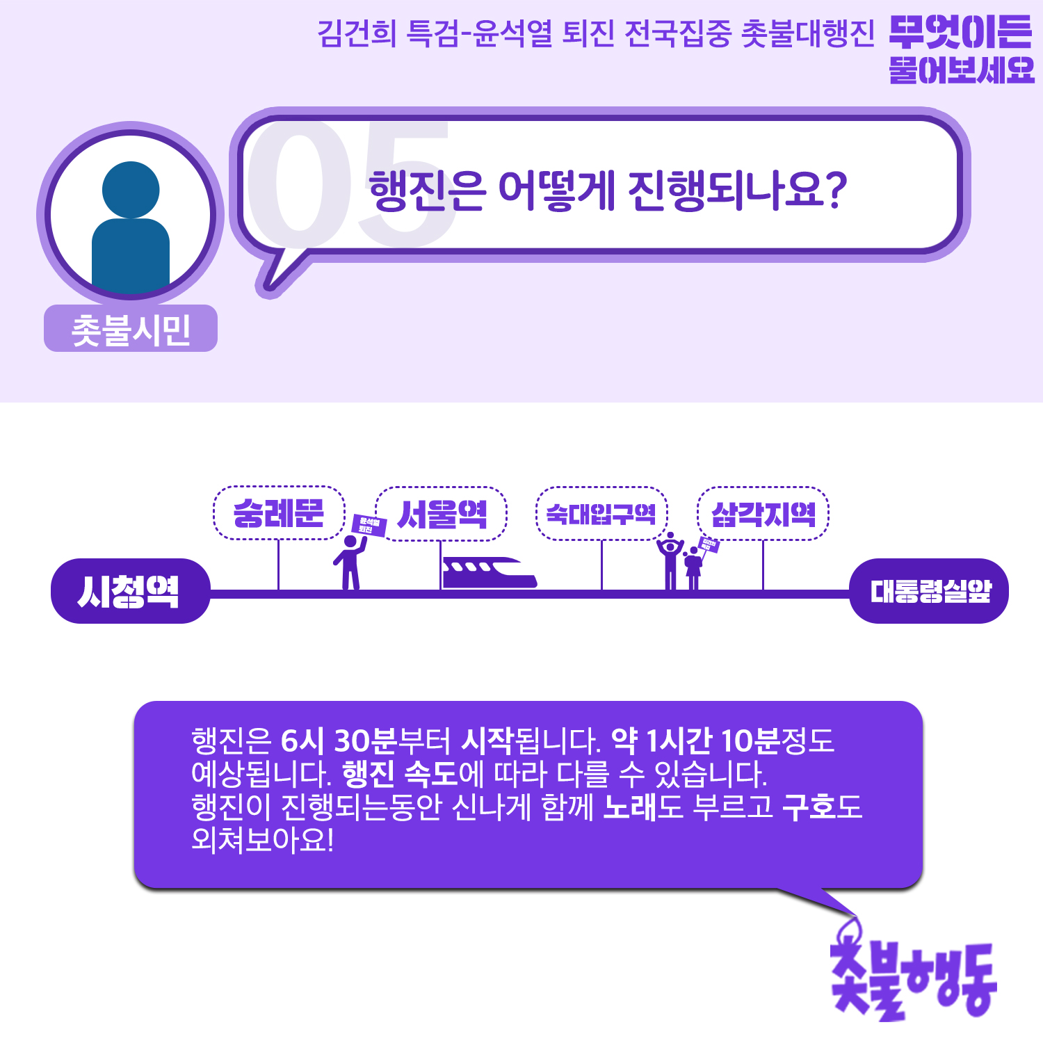 ◆ 행진 : 시청역 - 숭례문 - 서울역 - 숙대입구역 - 삼각지역 - 대통령실 앞