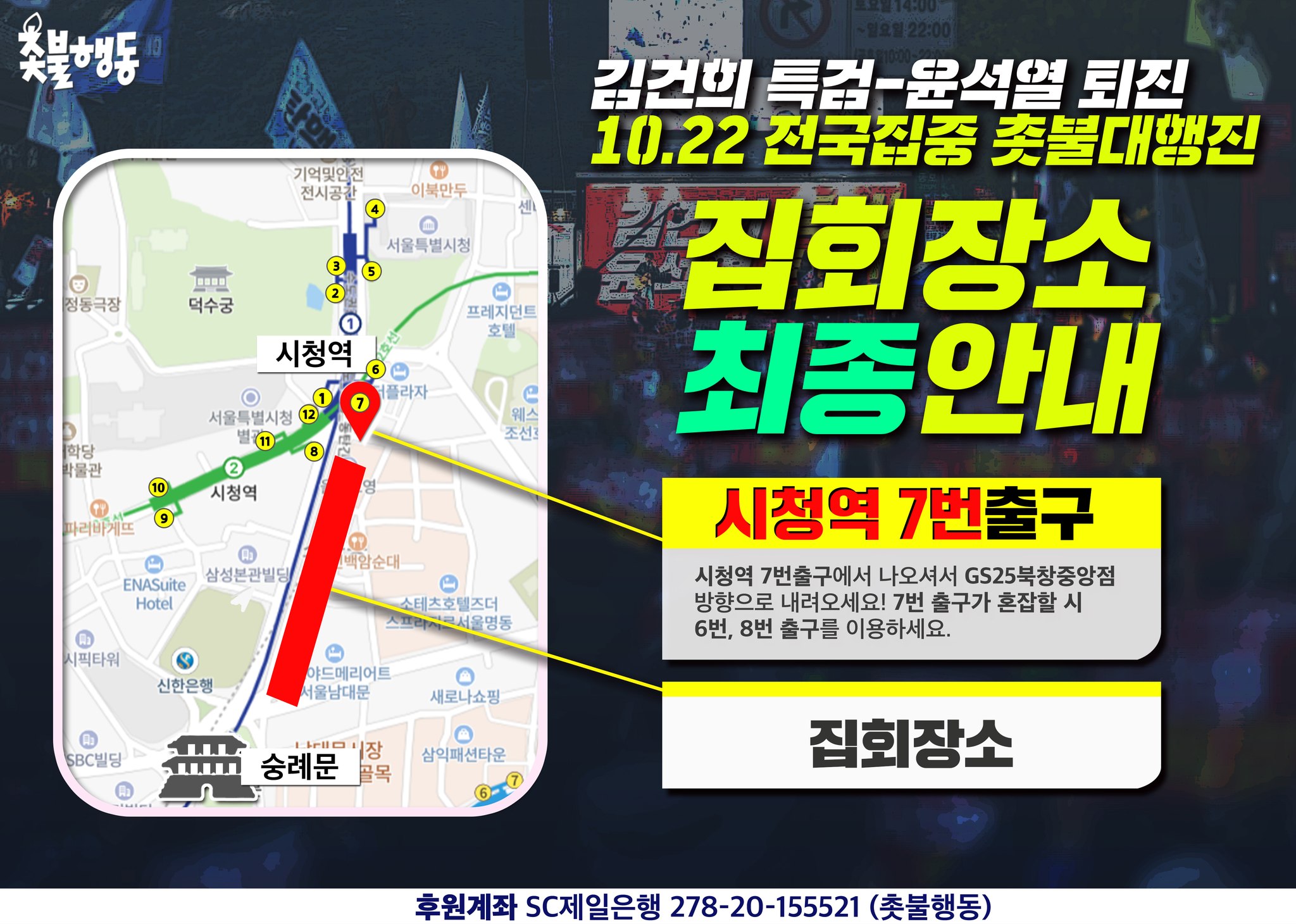 서울 남대문 10월22일(토) 4시 남대문 신한은행 영업부 본점 앞 윤석열, 김건희 퇴진 집회
