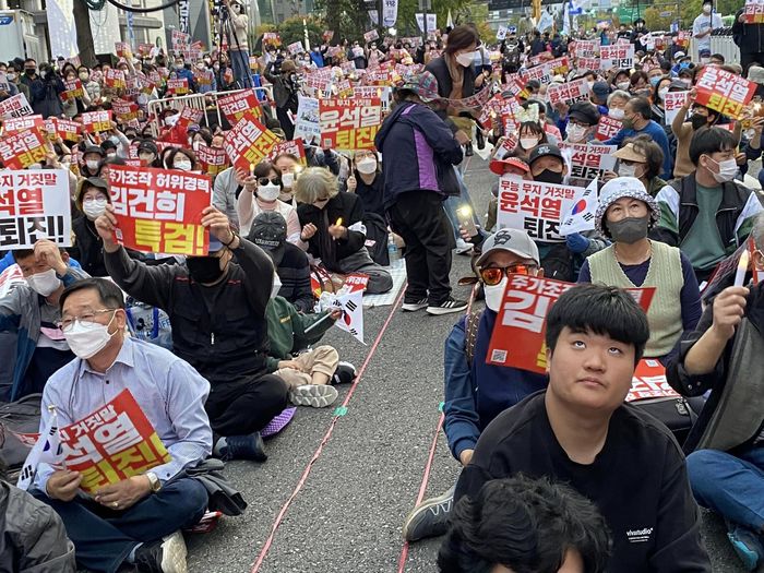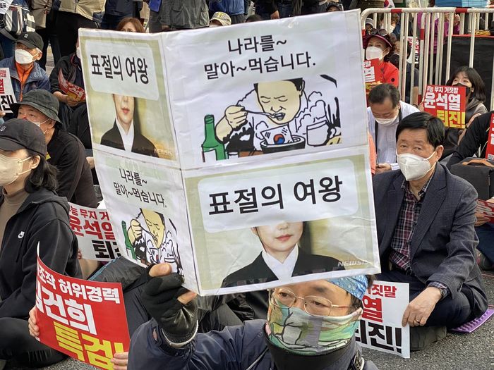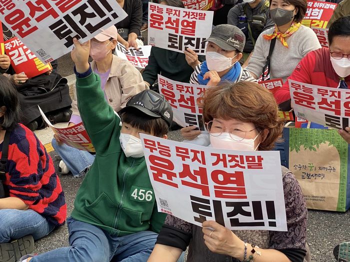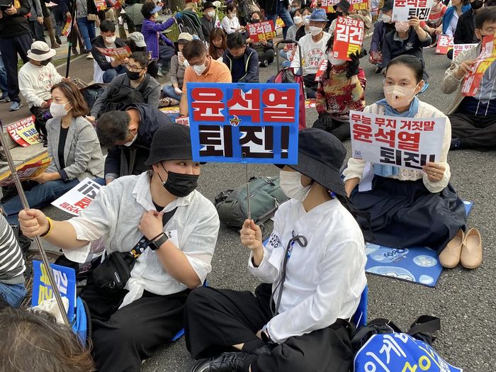 이날 오후 5시께부터 서울 세종대로 일대에서 열린 서울 집회에서 사회를 맡은 김지선 촛불행동 강남서초지부 대표는 "지지난주엔 윤석열의 외교참사 때문에 화가 나서 나온 분들이 많았고 지난주에는 김건희 논문 조작에 분노해 나온 분들이 많았다"고 말했다.