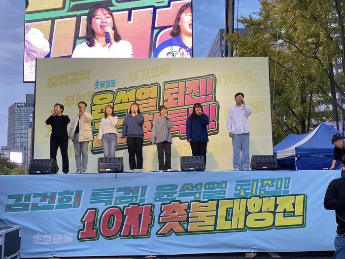 그리고 이들은 "윤석열 정권의 멸망은 시간 문제"라며 "촛불이 그 시간을 결정한다. 촛불이 승리한다"며 시민들의 더 많은 참여를 호소했다.