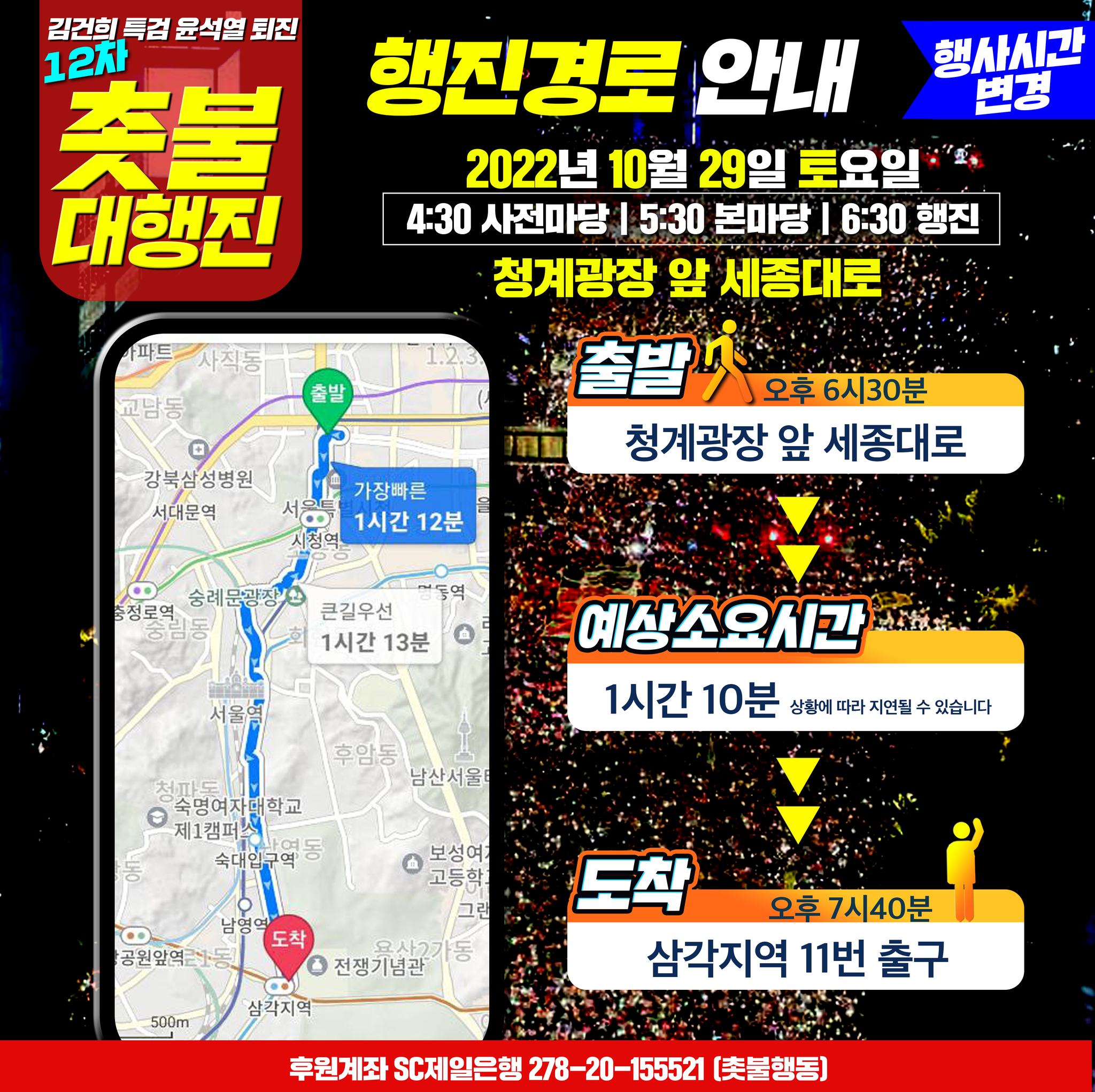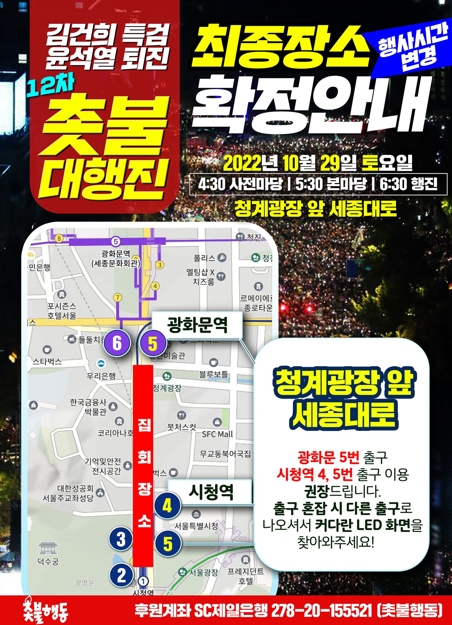 | 10월29일(토) 5시30분 청계광장 앞 세종대로 김건희 특검, 윤석열 퇴진 12차 촛불대행진 집회 일정 (0) | 2022.10.28 |