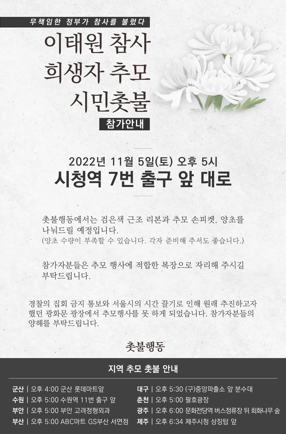 11월5일(토) 이태원 참사 추모 촛불 집회 13차 촛불행동 일정