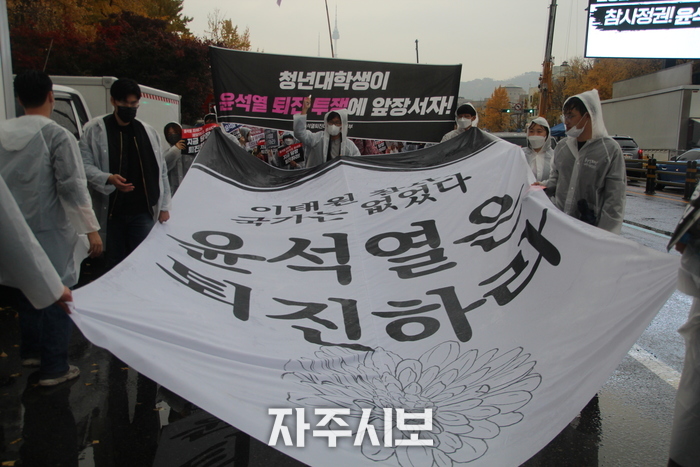 청년대학생 행동의 날 참가자들은 오후 3시부터 ‘윤석열은 퇴진하라’, ‘퇴진이 추모다’, ‘국가가 죽였다’, ‘무책임한 정부가 참사를 불렀다’, ‘국민들이 죽어간다, 이게 나라냐’ 등의 만장과 손 선전물을 들고 삼각지역 4번 출구에서 출발해 삼각지역 일대를 행진했다.