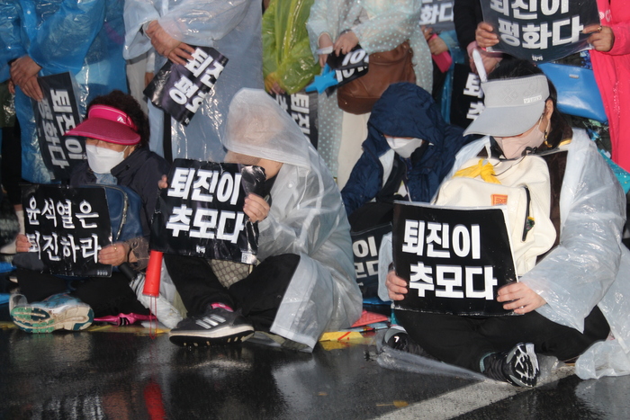 전쟁 조장, 평화 파괴, 윤석열은 퇴진하라!