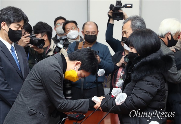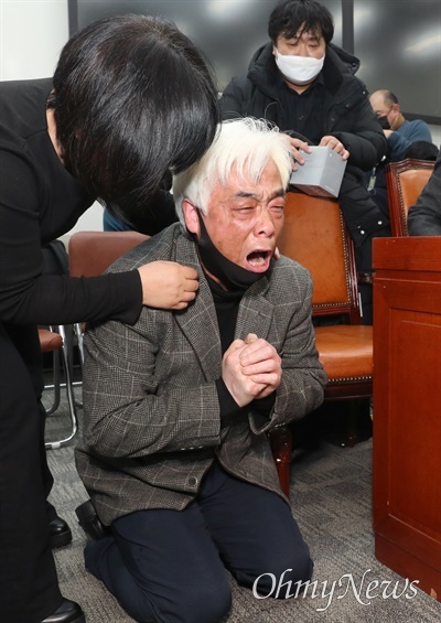 "정진석 비대위원장님, 주호영 원내대표님 부탁드립니다. 우리 지한이, 억울하게 죽은 우리 아들 진실을 밝혀주십시오. 부탁드립니다."