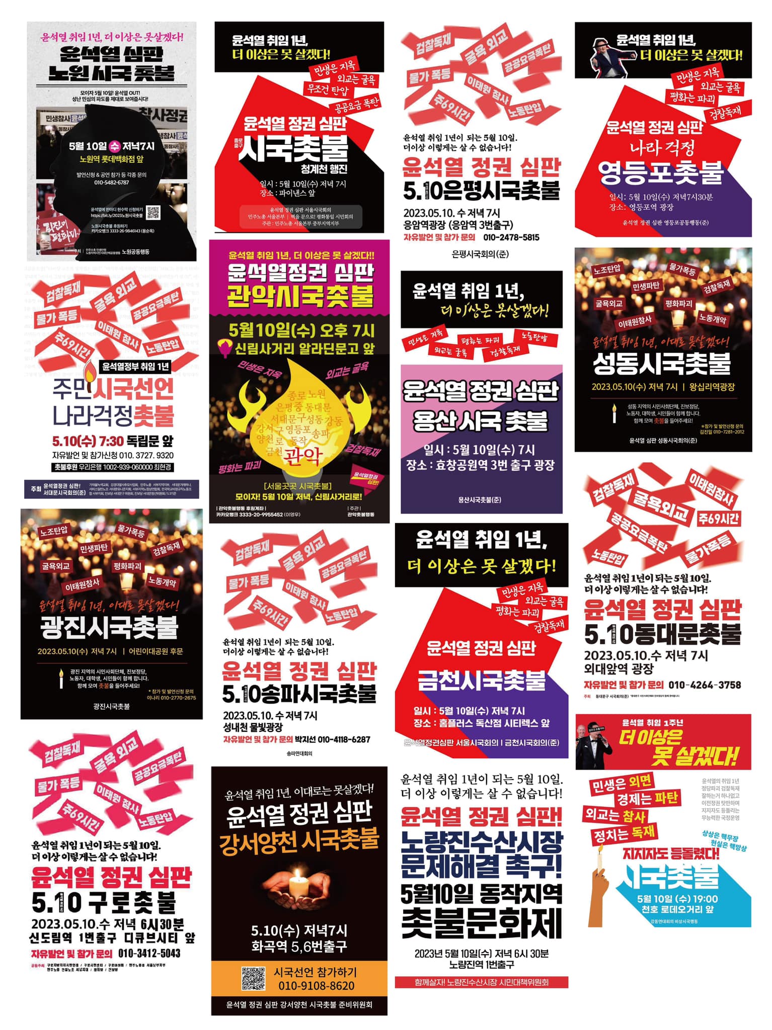 | 5월13일(토) 윤석열 퇴진, 김건희 특검 39차 촛불대행진 집회 전국 일정 (0) | 2023.05.07 |