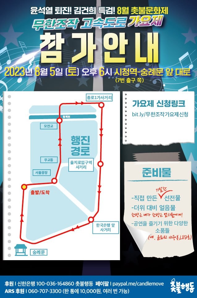 | 윤석열 퇴진 촛불집회 8월 서울 일정 (0) | 2023.07.25 |