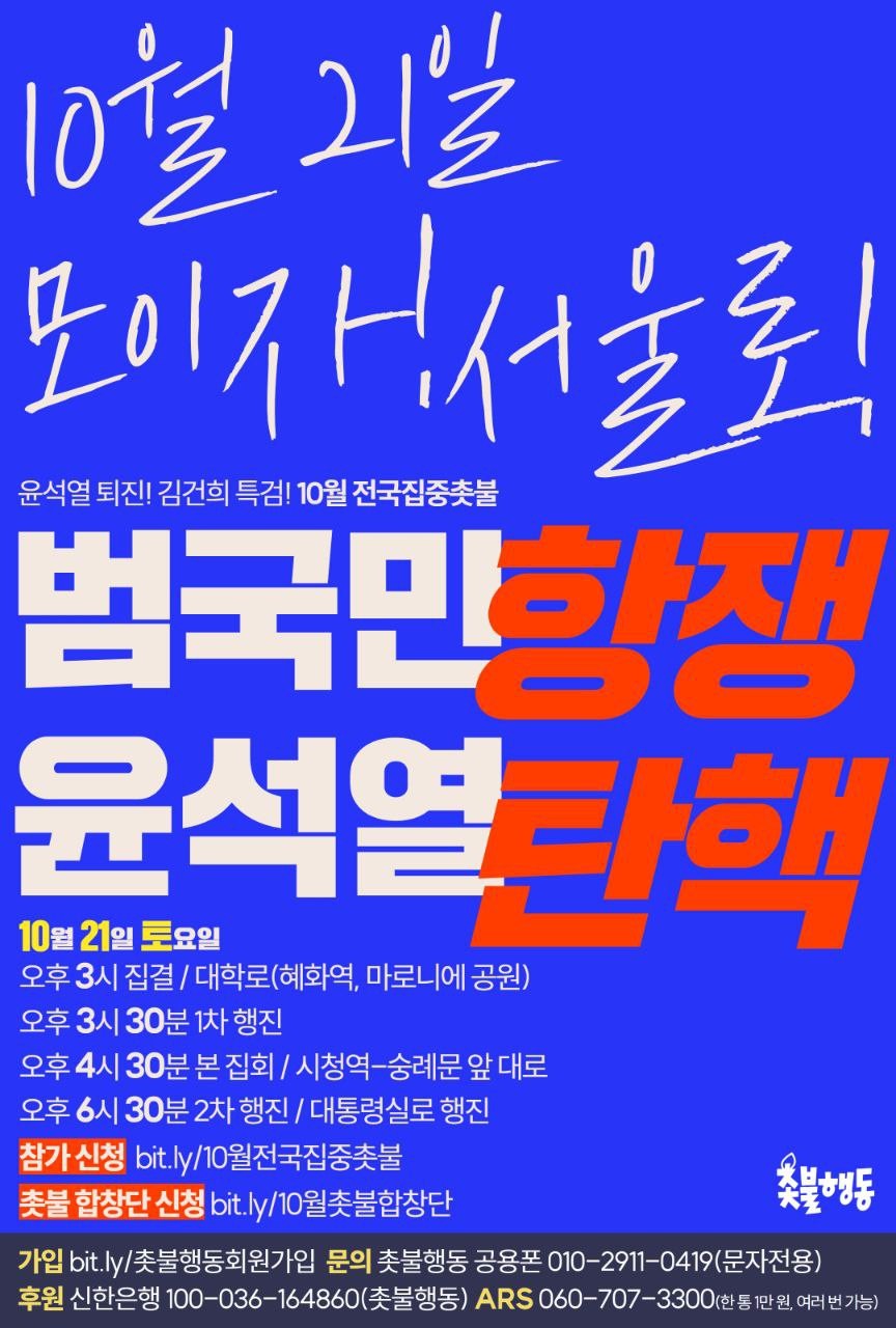 10월21일(토) 윤석열 퇴진, 김건희 특검 10월 전국집중 61차 촛불대행진 집회 일정