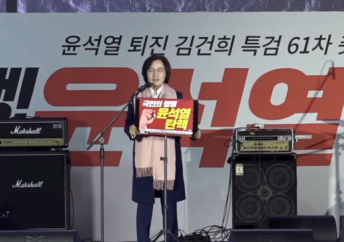 ▲ 추미애 전 법무부 장관이 윤석열 탄핵 연설을 하고 있다 (오마이TV 갈무리)