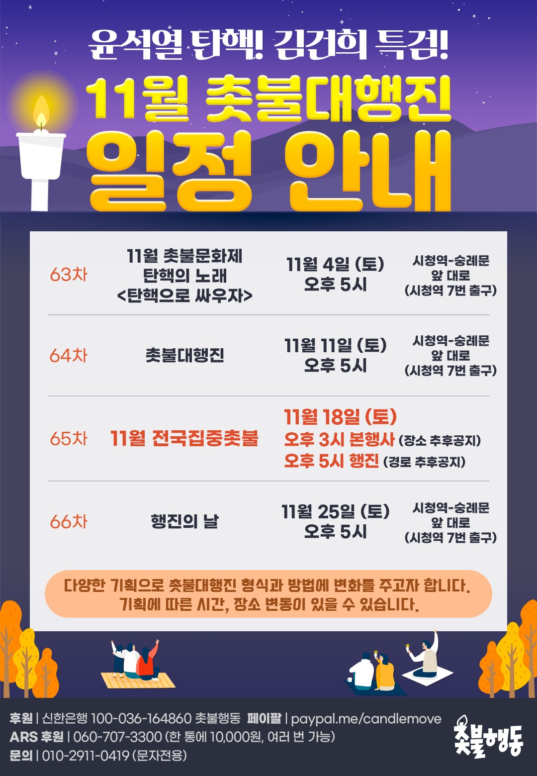 11월25일(토) 윤석열 퇴진, 김건희 특검 66차 촛불대행진 집회 일정 https://tadream.tistory.com/35426