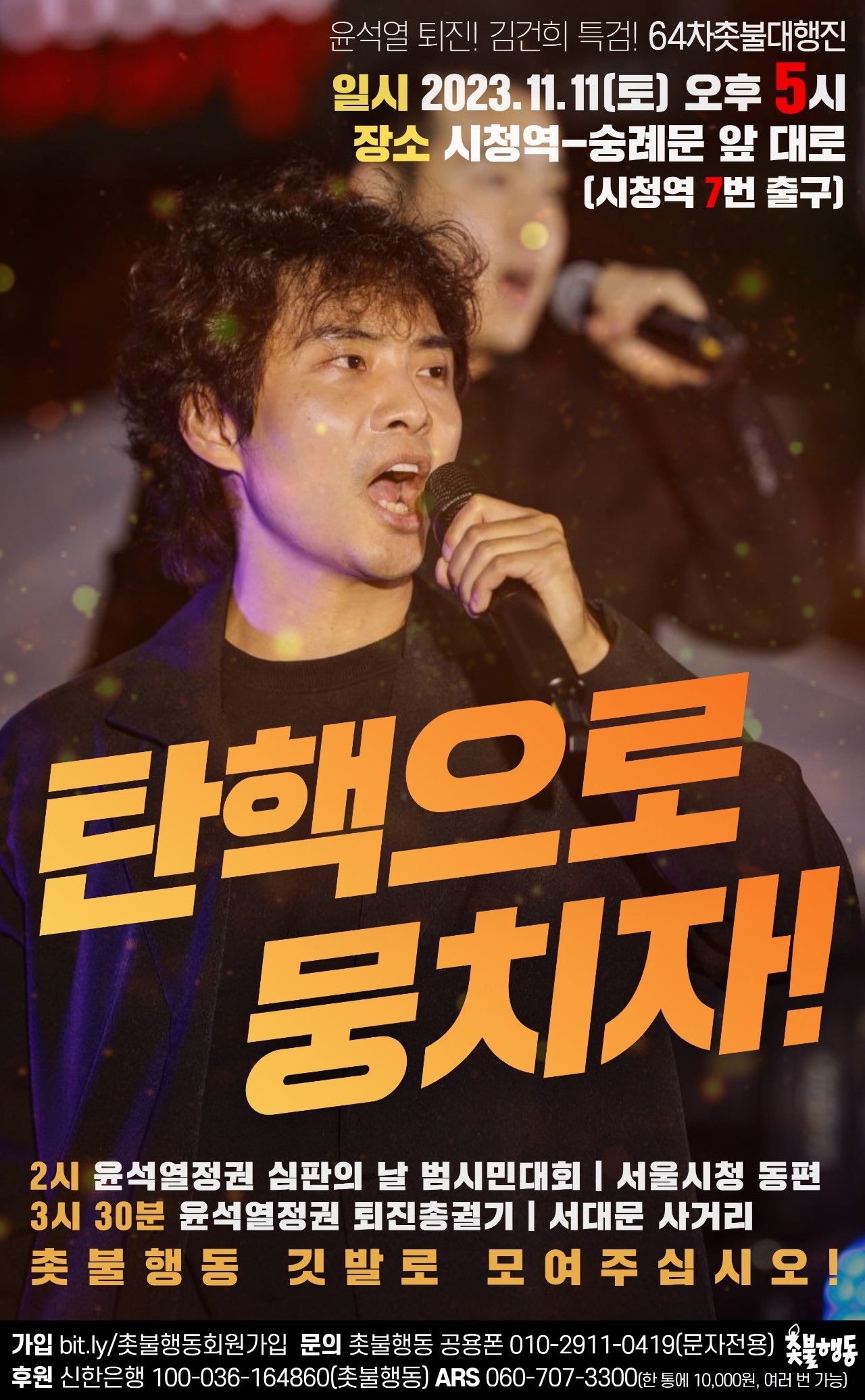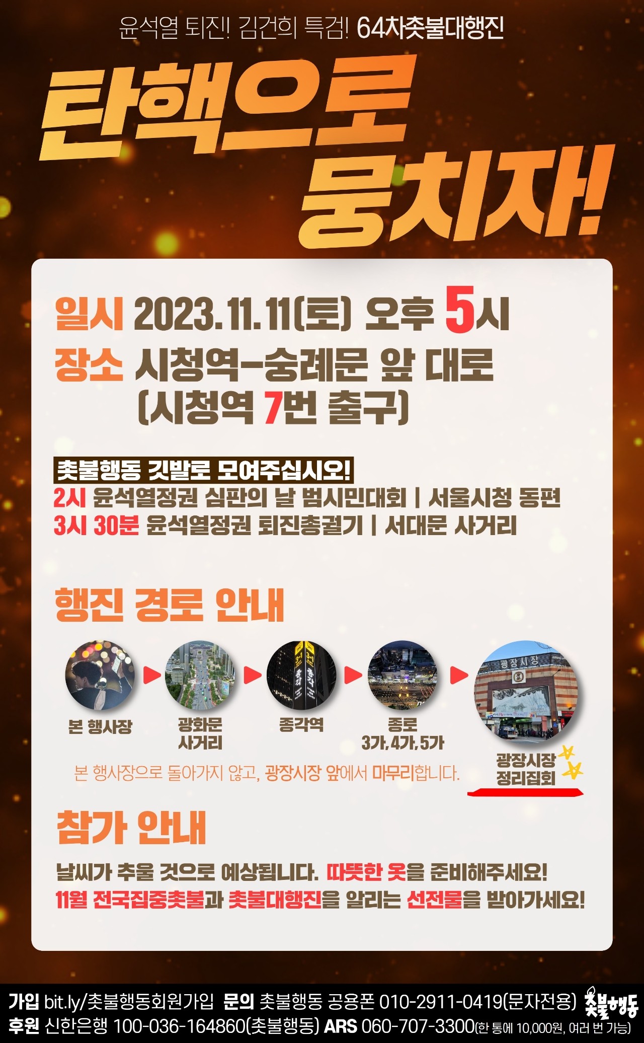 11월11일(토) 윤석열 퇴진, 김건희 특검 64차 촛불대행진 집회 일정