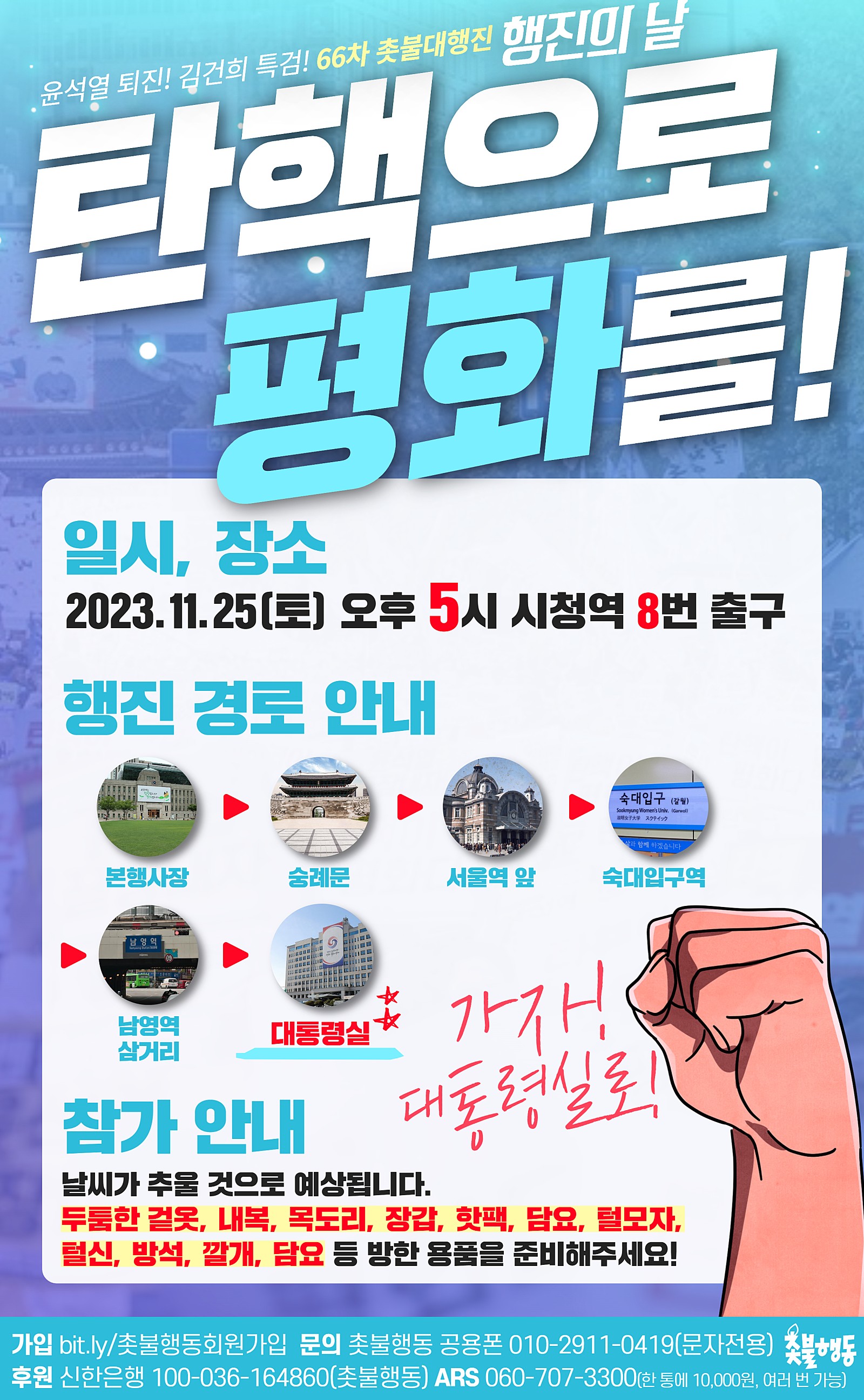11월25일(토) 윤석열 퇴진, 김건희 특검 66차 촛불대행진 집회 일정