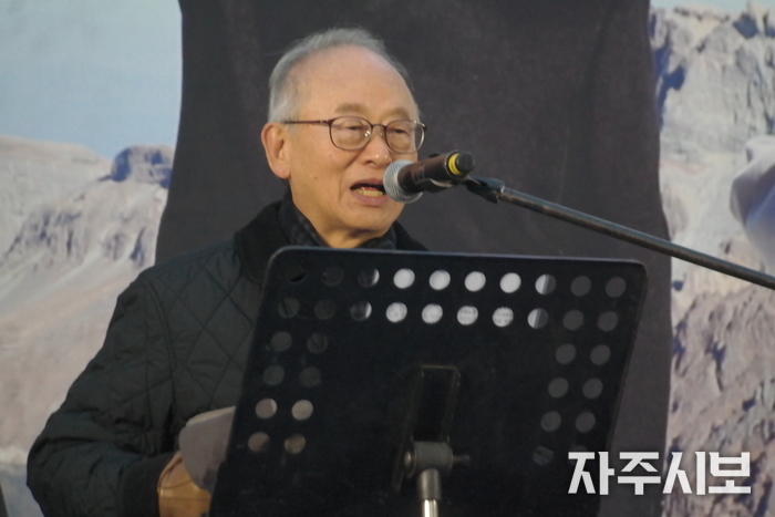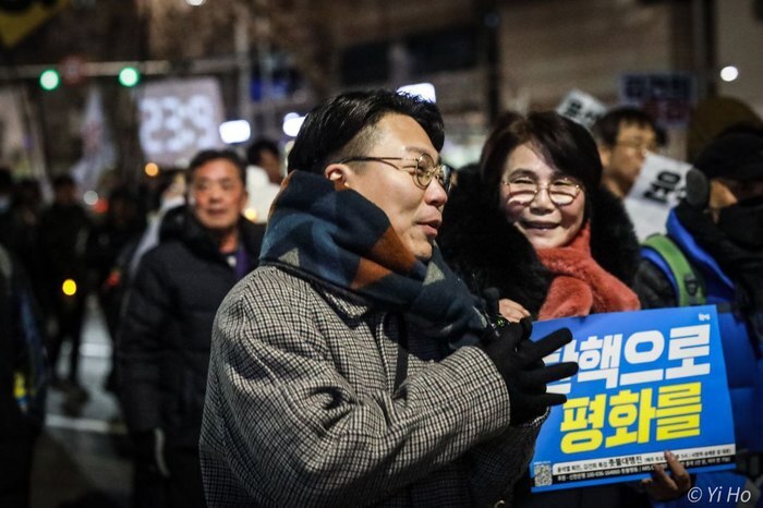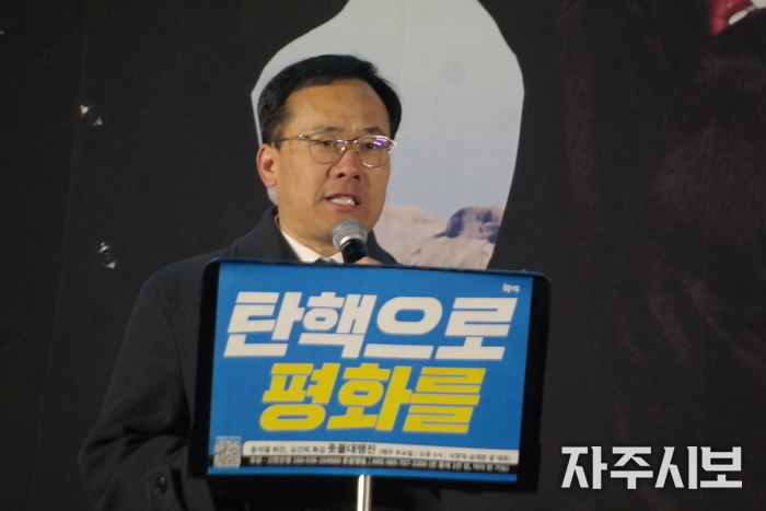 권오혁 촛불행동 공동대표는 전날 촛불행동이 발표한 격문 「윤석열 탄핵으로 평화를 지키자」를 낭독했다.