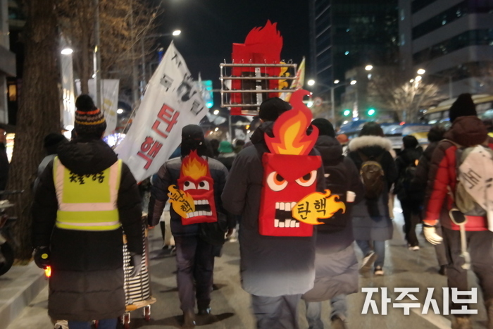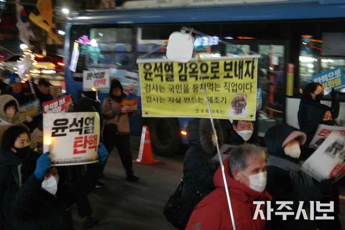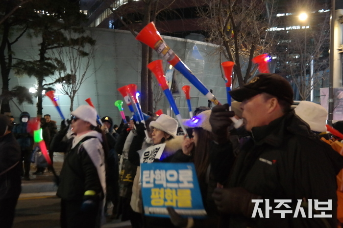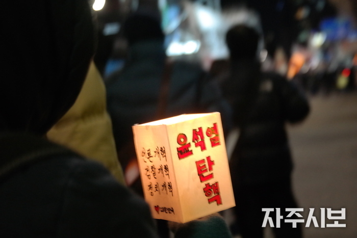 영하의 추운 날씨 속에서도 윤석열 탄핵을 염원하는 1만여 명(연인원)의 국민이 거리에 나와 촛불을 들었다.