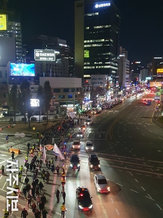 행진 대열은 용산 대통령 집무실이 보이는 삼각지역 인근에서 정리 집회를 했다.