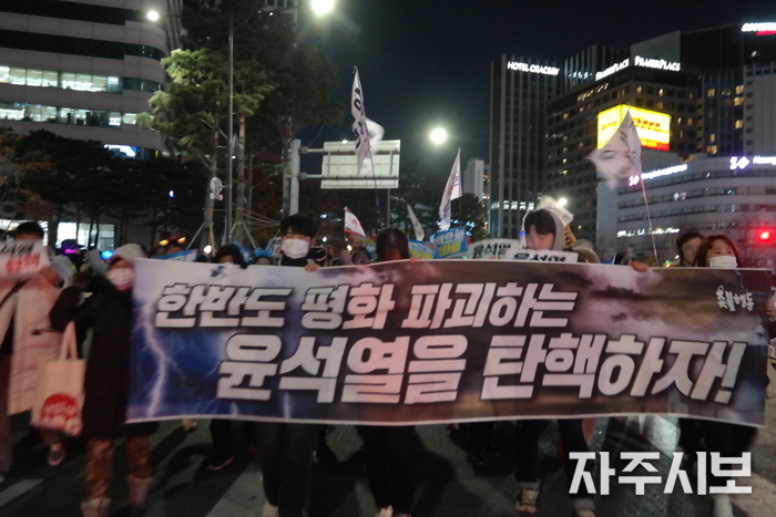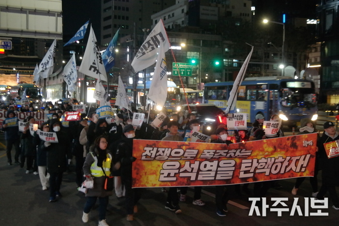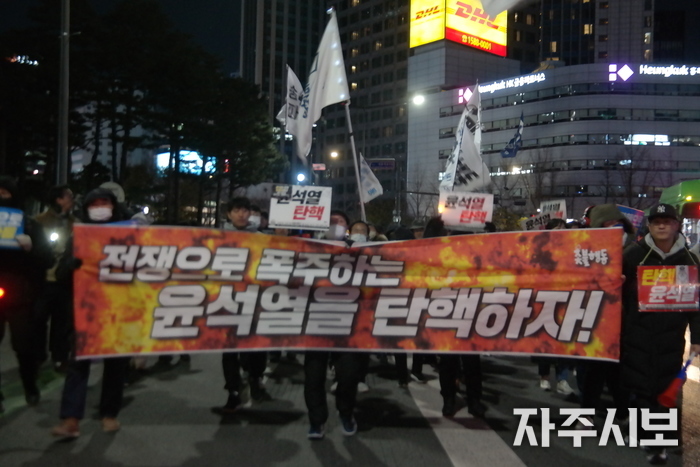 “탄핵이 평화다. 전쟁을 부르는 윤석열을 몰아내자!”