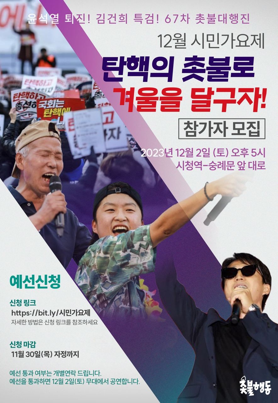 12월2일(토) 윤석열 퇴진, 김건희 특검 67차 촛불대행진 집회 일정