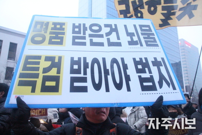 “뇌물 수수 특급 범죄자 김건희를 처벌하라!”