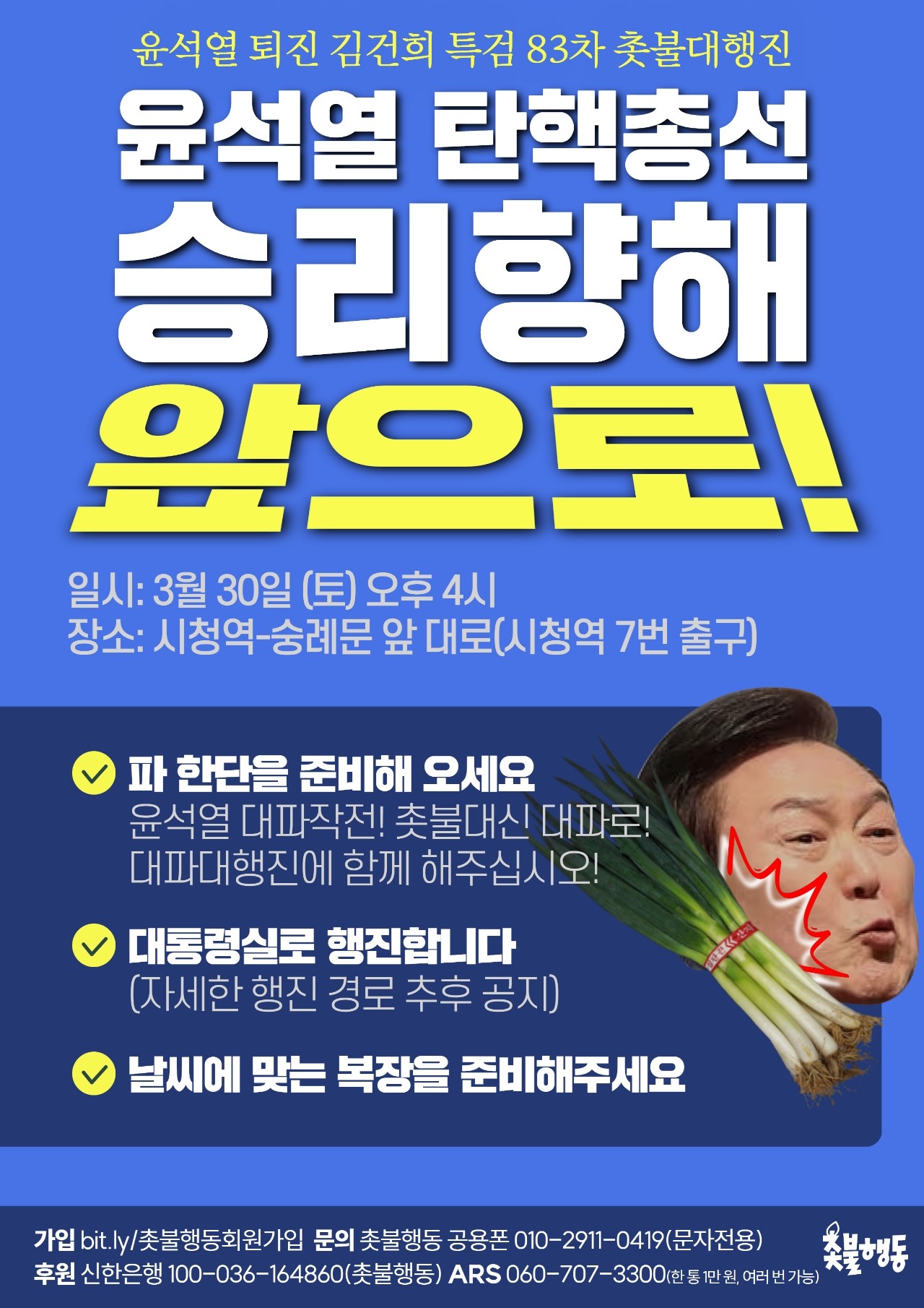 3월30일(토) 윤석열 퇴진 김건희 특검 83차 촛불대행진 집회 일정
