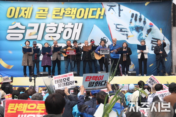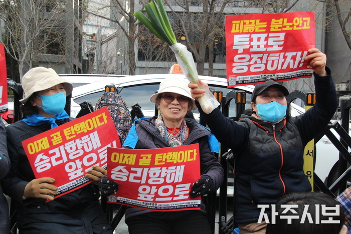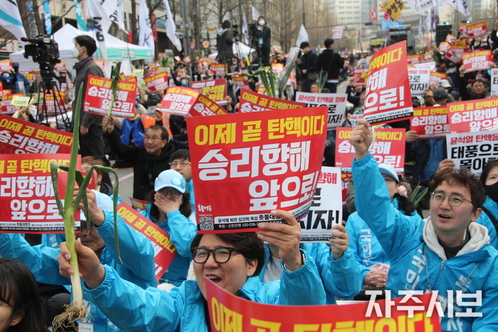 “이제 곧 탄핵이다, 승리 향해 앞으로!”