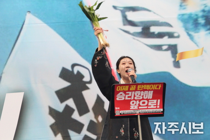 사회를 맡은 김지선 서울촛불행동 공동대표의 선창을 따라 참가자들이 구호를 외쳤다.