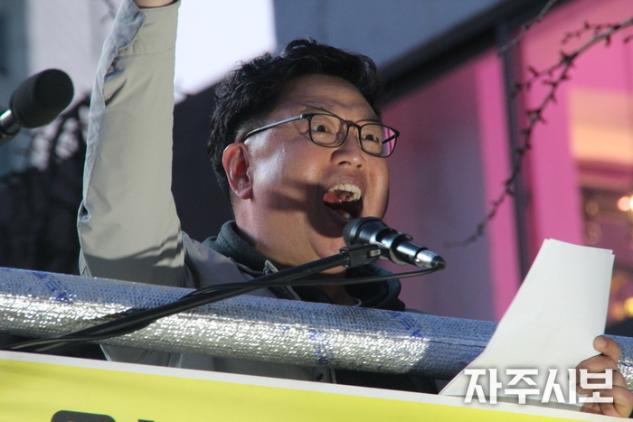 그러면서 “여기 주변에 선관위도 있을 것 같은데, 우리 쫓아다니지 말고 관권선거, 고무신 선거하는 윤석열이나 쫓아다니면서 공정한 선거관리를 하기 바란다. 탄핵의 봄이 오면 윤석열에게 부역한 자들, 국민들의 서릿발 같은 비판을 피할 수 없을 것이다”라고 경고했다.