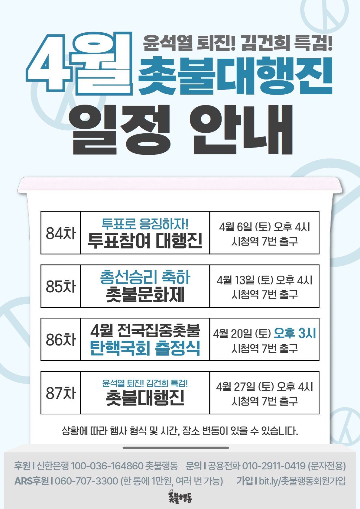 윤석열 퇴진 김건희 특검 촛불대행진 집회 4월 서울 일정