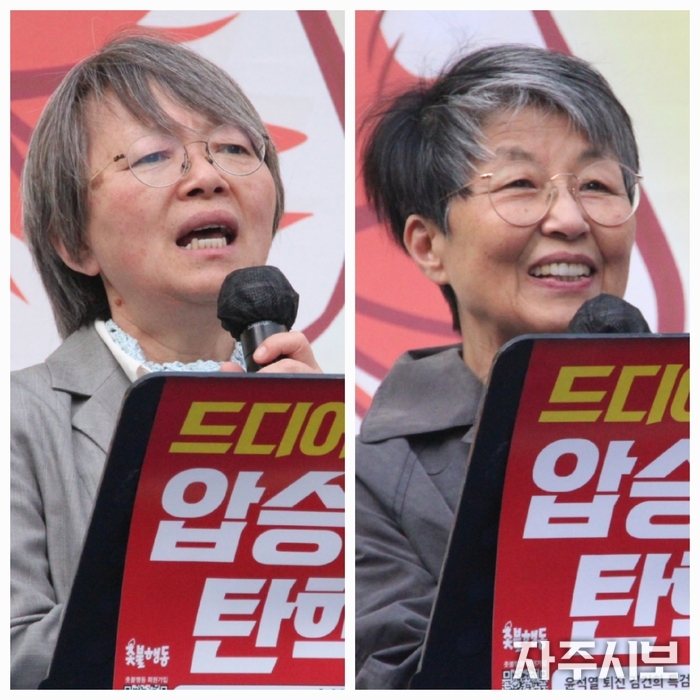 ▲ 김은진 촛불행동 공동대표(왼쪽)와 이승연 독일 함부르크 촛불행동 대표(오른쪽). © 김영란 기자