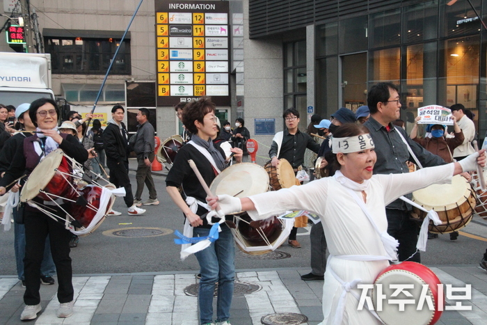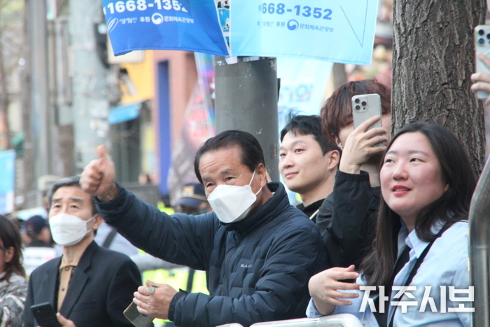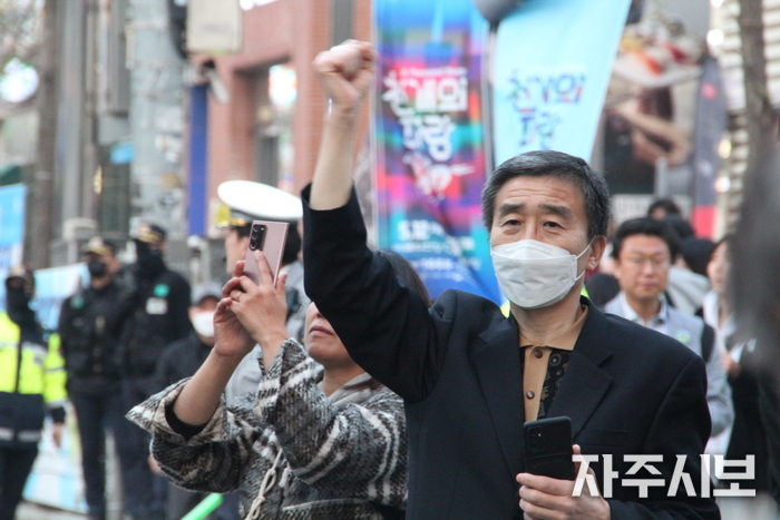 ▲ 시민들이 행진대열에 환호를 보내고 있다. © 김영란 기자