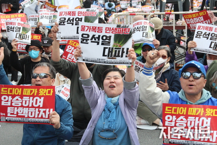 이날 집회는 사회를 맡은 김지선 서울촛불행동 공동대표의 선창을 따라 참가자들이 구호를 외치며 시작했다.