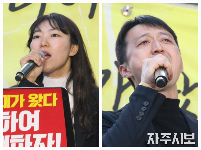 해병대에서 군 복무를 했던 김수근 씨는 “채수근 상병과 해병대뿐만 아니라 대한민국 군대의 명예를 되찾는 길은 윤석열 탄핵뿐이다. 우리 청년들, 국군장병들의 생명을 짓밟는 살인 정권을 반드시 우리 손으로 응징하자”라고 소리높였다.