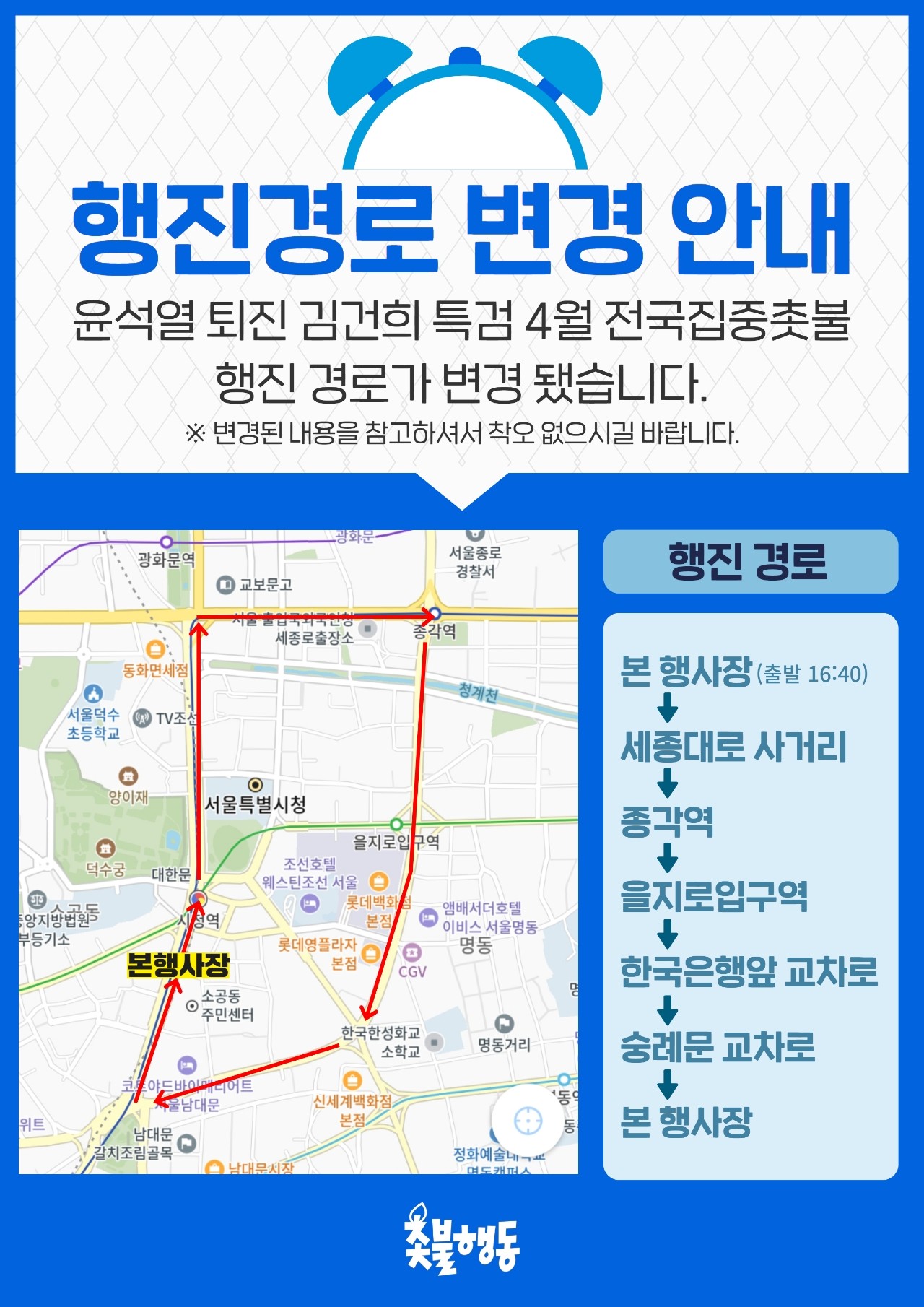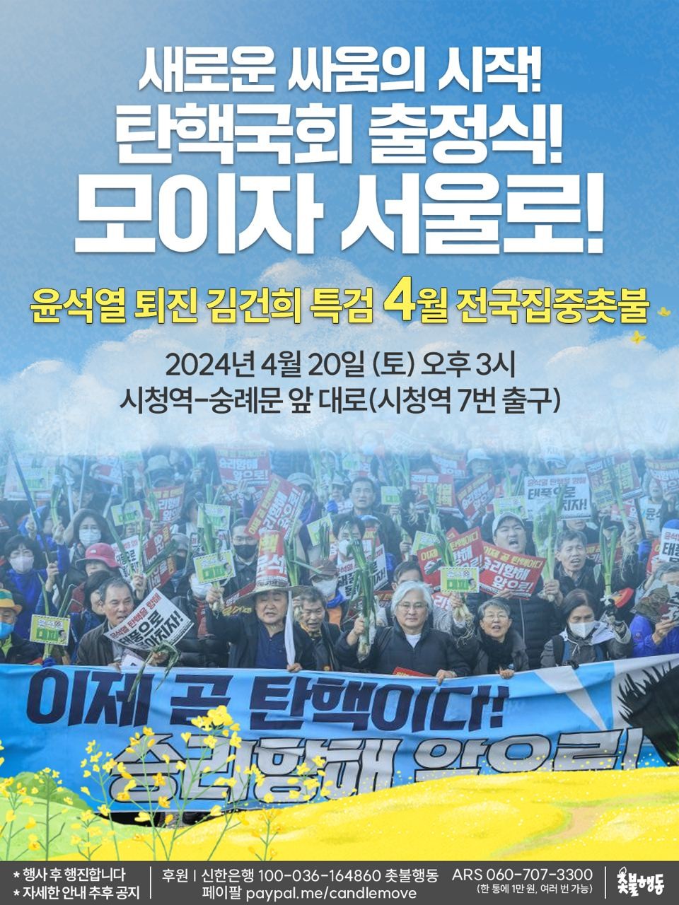| 윤석열 퇴진 김건희 특검 촛불대행진 집회 5월 서울 일정 (0) | 2024.04.26 |