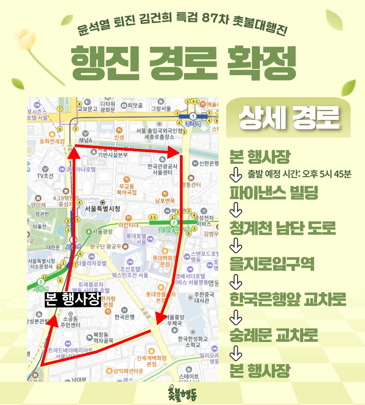 서울 4월27일(토) 5시 시청역-숭례문 앞 대로(시청역 7번 출구) 윤석열 퇴진 김건희 특검 87차 촛불대행진 --> 시간 변경