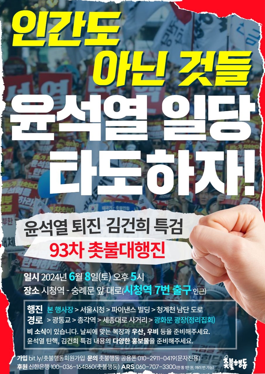6월8일(토) 윤석열 퇴진 김건희 특검 93차 촛불대행진 집회 일정