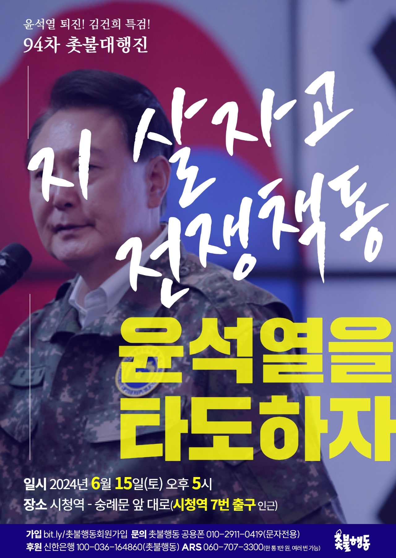 6월15일(토) 윤석열 퇴진 김건희 특검 94차 촛불대행진 집회 일정